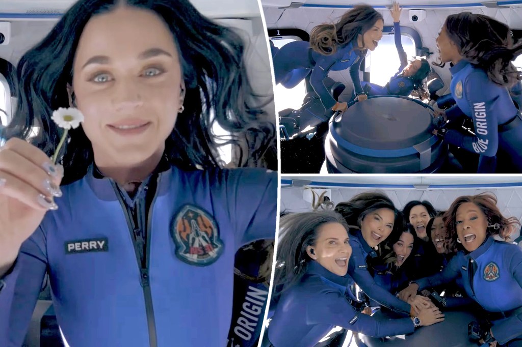 Katy Perry floats in zero gravity. Blue origin
